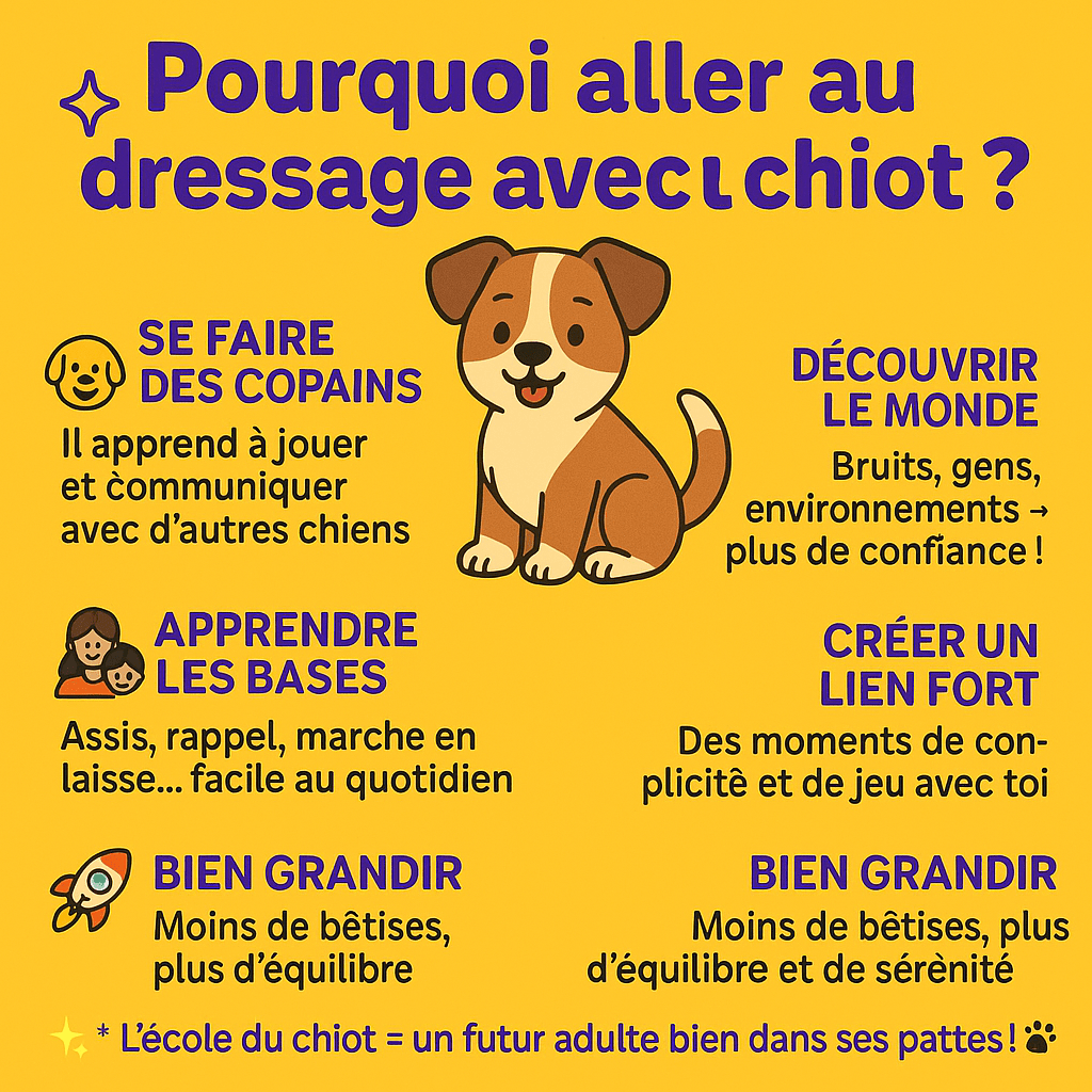 Aller au dressage avec son chiot, c’est investir dans son futur équilibre, sa sécurité, et votre bonheur commun. Ce n’est pas une contrainte, mais un moment de jeu, d’apprentissage et de partage.