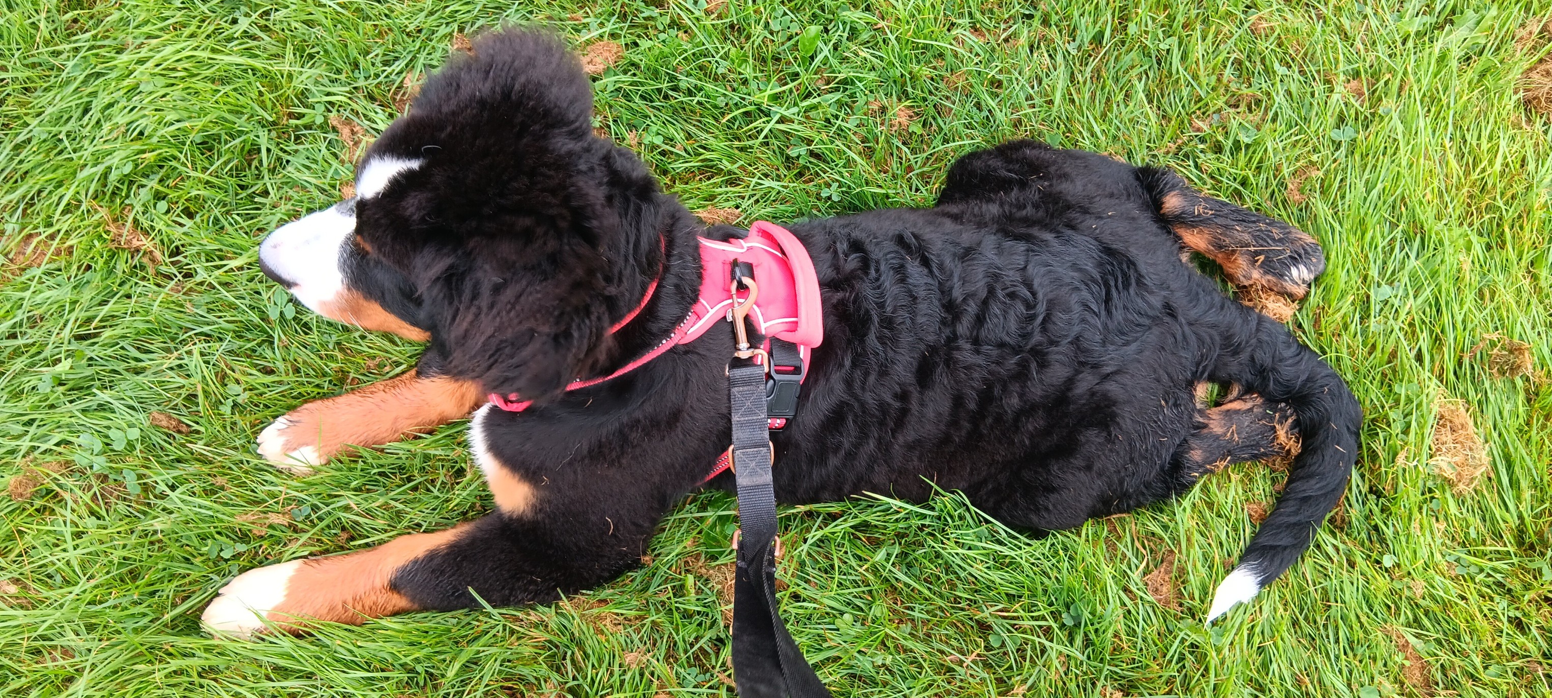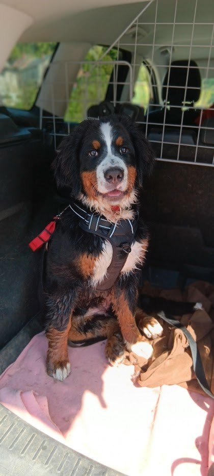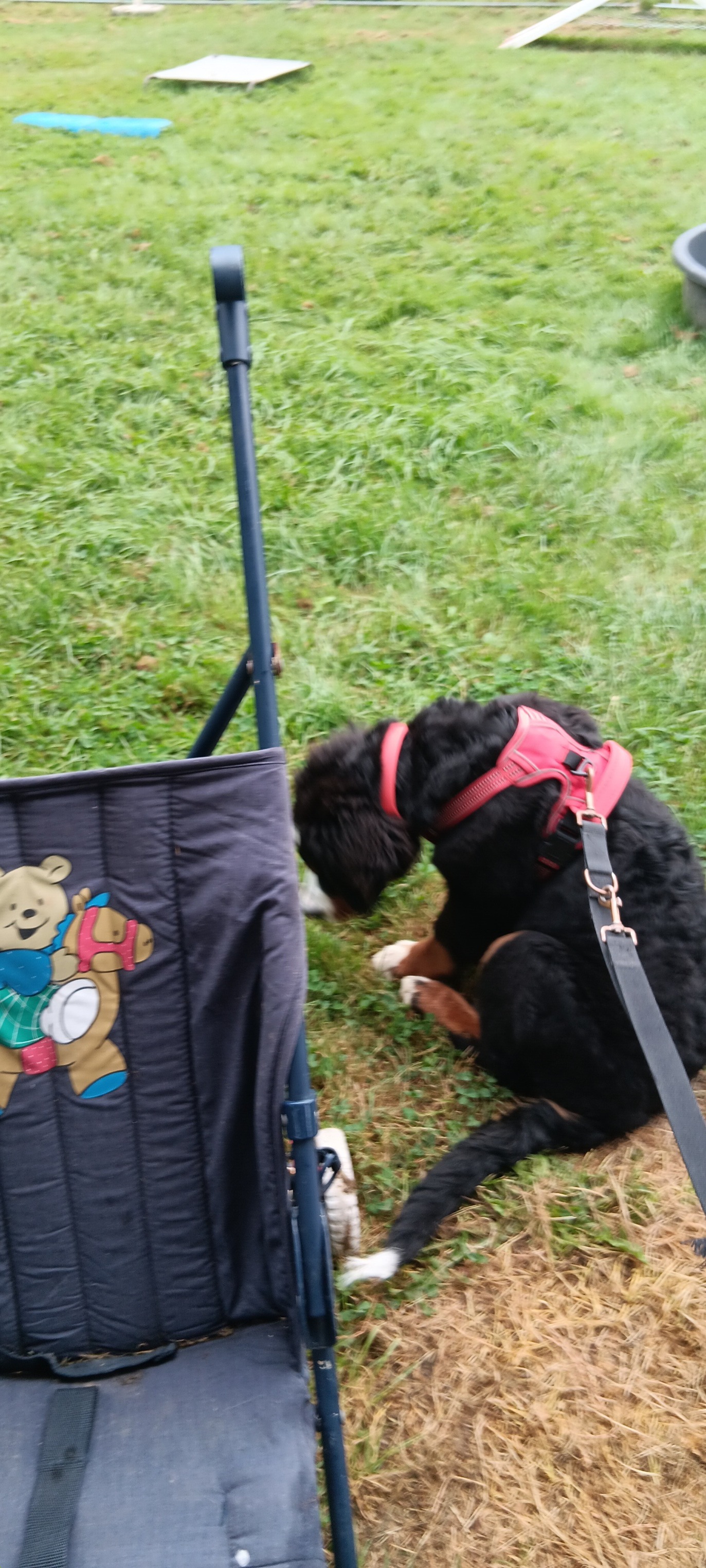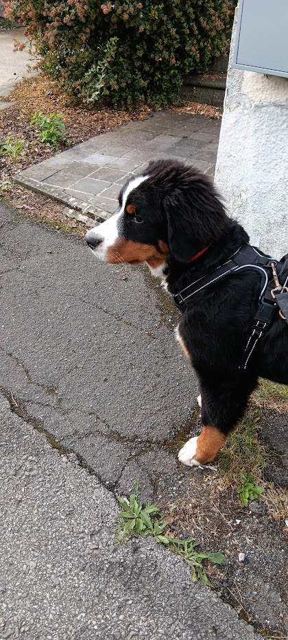 Moi : “Pas de balade sans harnais ? J’ai réglé le problème moi-même 😇 sauf que j’ai pas bien réussi à le mettre… Heureusement maman a une caisse magique pour en retrouver un !”