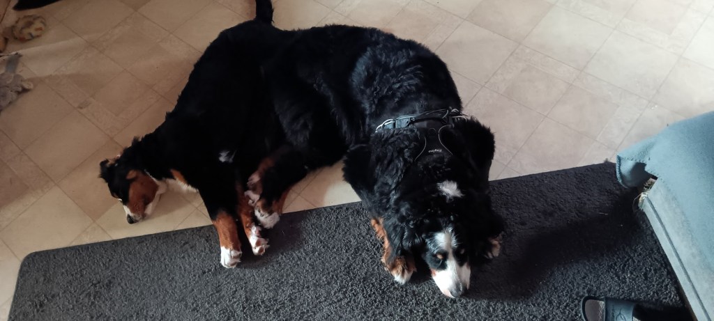 Un lundi tranquille, maman et papa nous dit aller on va chercher le souper! Et nous voilà avec Sunny, on part promener mais … plus loin que d’habitude!!