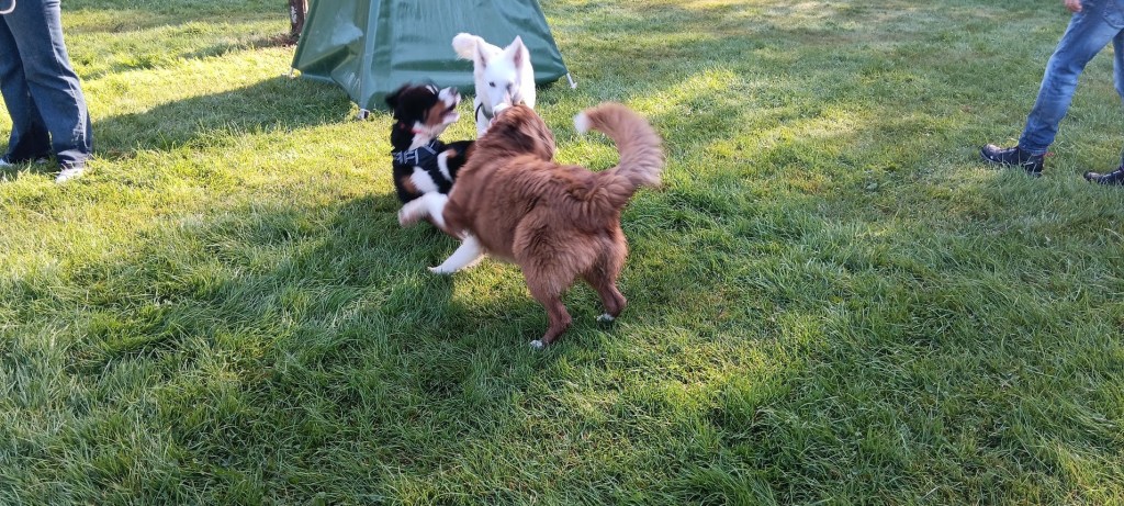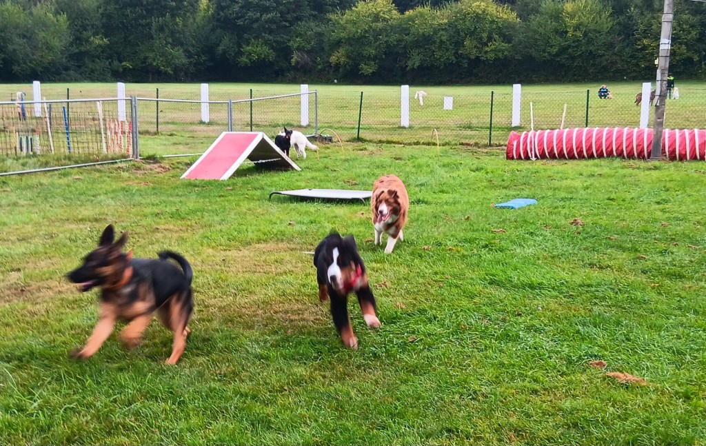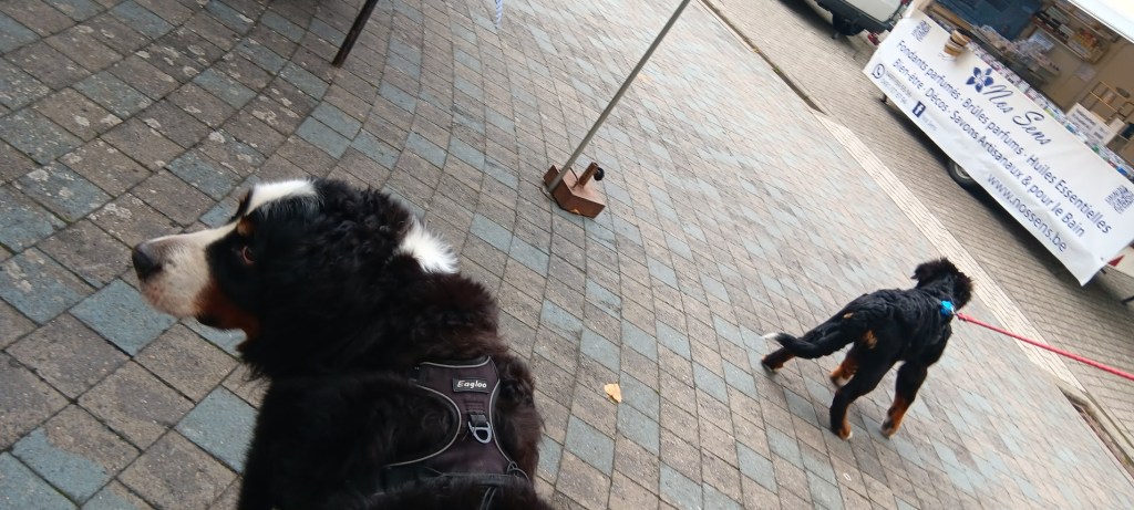 Maman parle avec le monsieur sans chien et on se trouve près des grands. Et là une dame vient vers nous avec son chien. Elle nous dit : ah c est kimmy ! Vous venez de montigny le tilleul, je suis ses aventures sur Facebook.