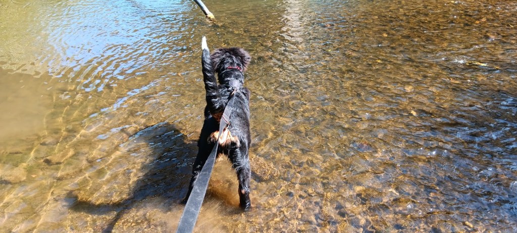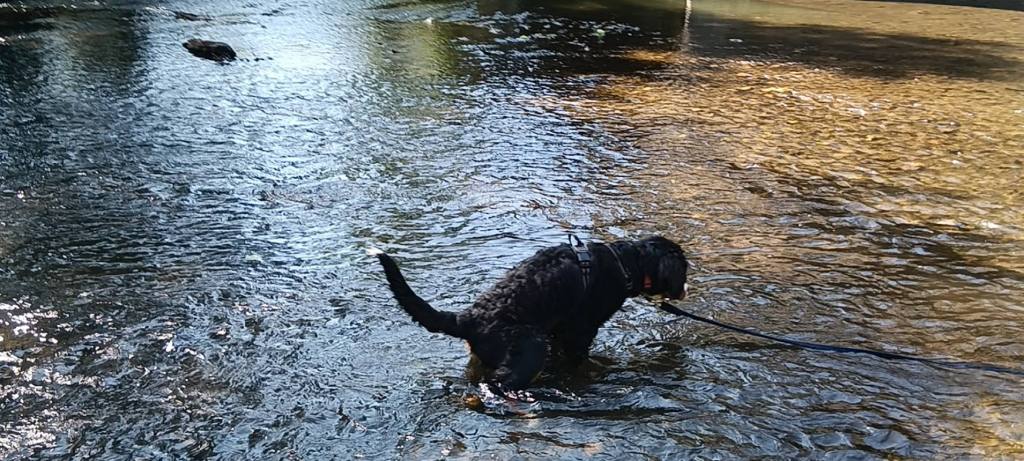 Sur le chemin du retour, nouvel arrêt, là je connais pas non plus… je suis papy et maman. y a un début de bois… et plein d’eau qui coule à coté. Faudrait fermer le robinet ! Mais non Kimmy, c’est un ruisseau.
