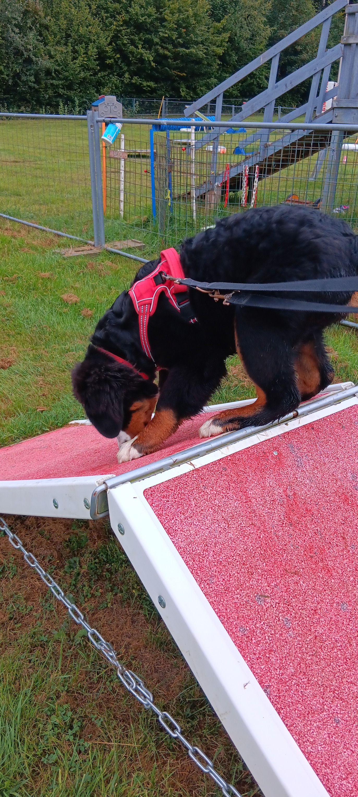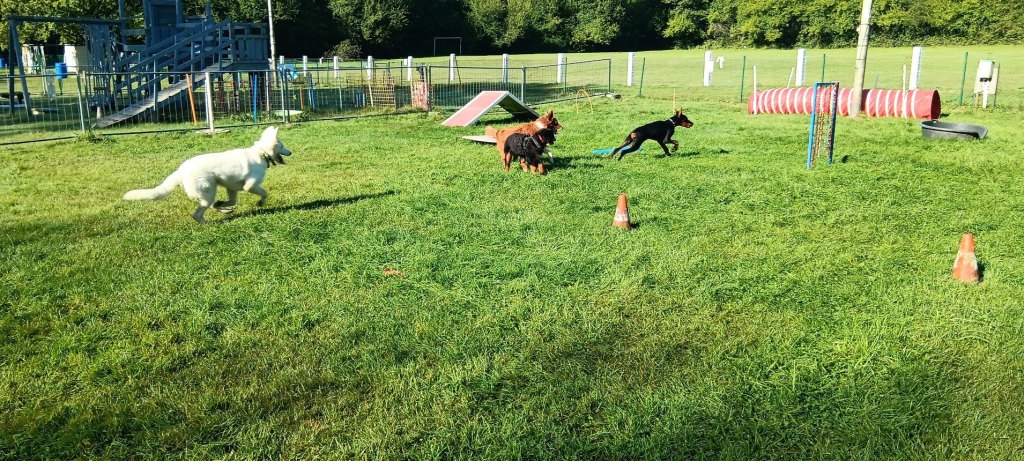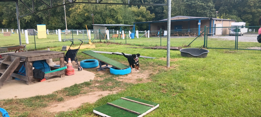 Samedi matin… odeur de cervelas, vous l’avez compris :) c’est direction école avec les copains. Comme d’habitude petit moment de folie avec eux, puis on se concentre un peu … ou pas hihihi. un peu d’obstacle pour tenir la forme. Et puis petit tour pour faire les clients de maman, enfin elle travaille et moi je dors faut bien récupérer un peu hein je suis un bébé quand meme.