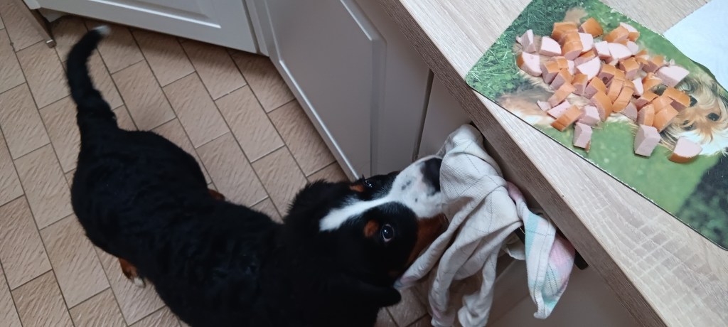 - éparpille les croquettes sur le sol, dans l’herbe ou sur un tapis → il doit chercher.